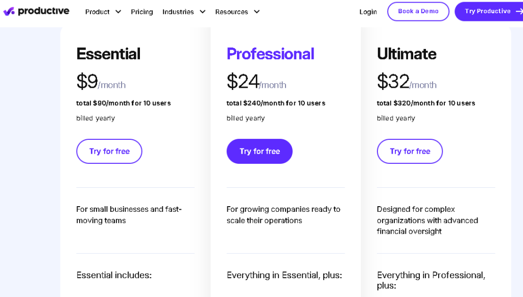 | Productive.io | Agencies & resource planning | ❌ | Moderate-High | ❌ | $9/m |