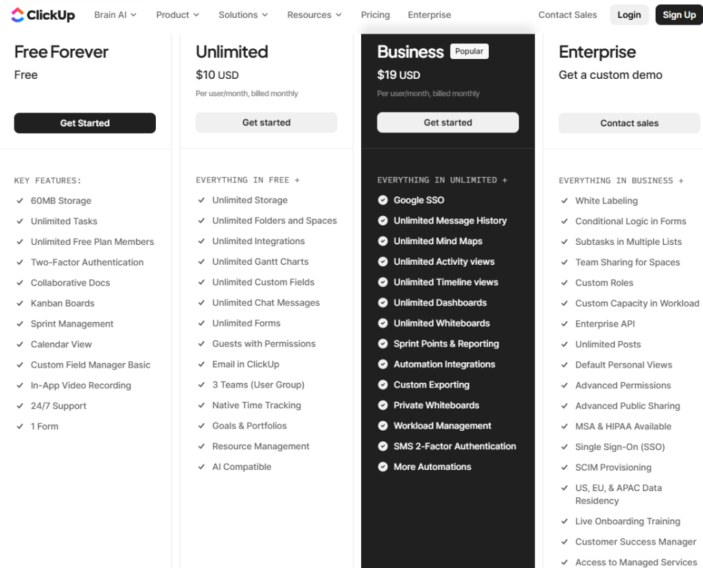 | ClickUp | Customizable work & project mgmt | ⚠️ | Moderate | ✅ | $10/m |