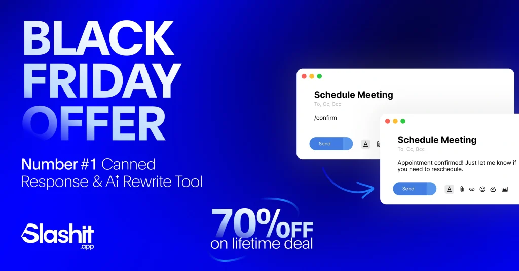 | Productivity Tool | Slashit App | Dynamic templates, snippets, magical rewrite, clipboard history, custom shortcuts & custom prompts. | 70% OFF on Lifetime Deal | Auto-applied | Black Friday Sale 2025 |