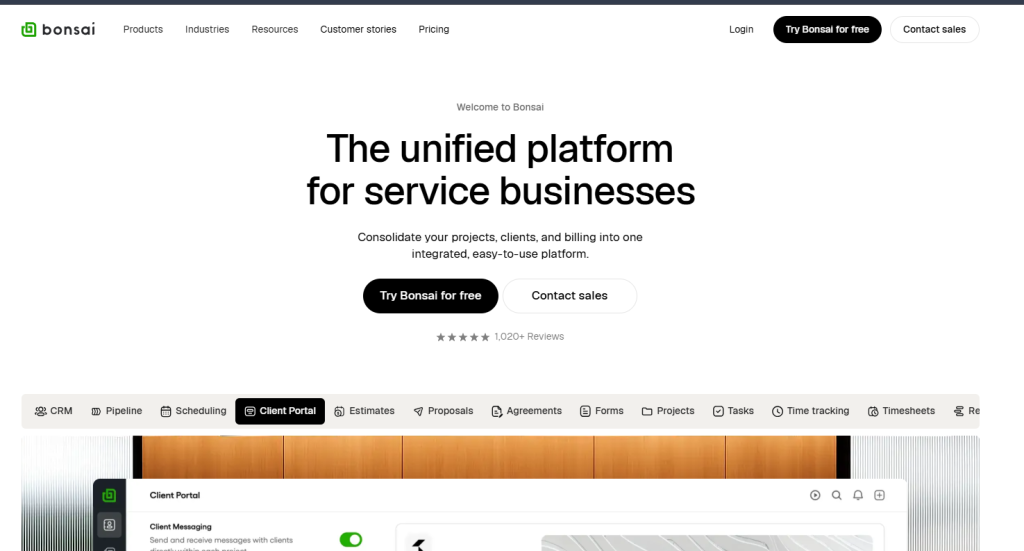Hello Bonsai, mostly known as Bonsai, is an all-in-one business management solution that offers you a unified platform for business services. It features CRM, a client portal, pipeline management, scheduling, a form builder, time tracking, and other project management tools. This way, you can streamline your services and run agencies smoothly.