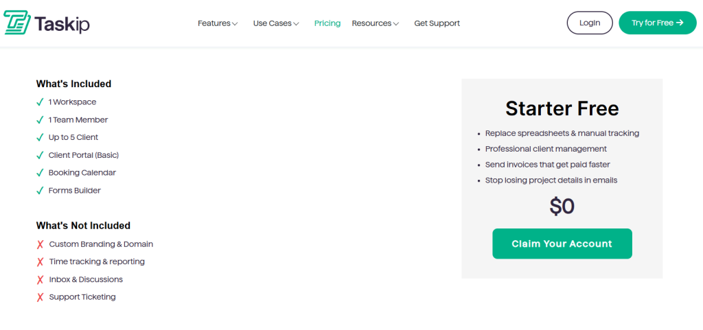 1. Taskip Free Plan Advantage at Zero Cost