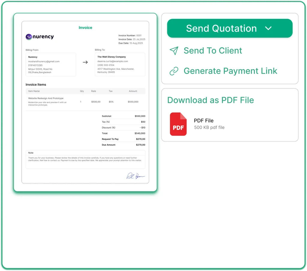 This setup helps shorten the payment cycle, reduce follow-ups, and ensure a smoother experience for both businesses and clients.