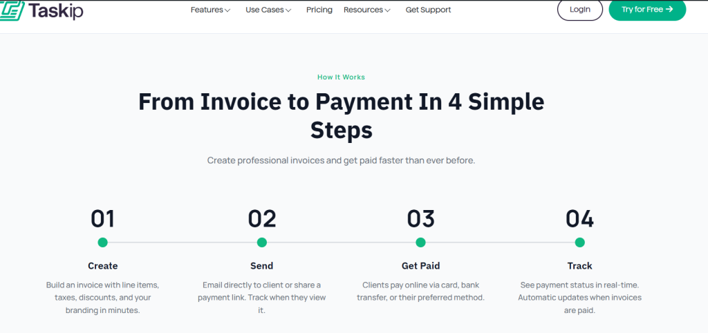 This is where Taskip stands out, by combining CRM and invoicing in a single platform, it helps teams move from lead management to invoicing faster, with fewer manual steps and fewer delays in payment collection.