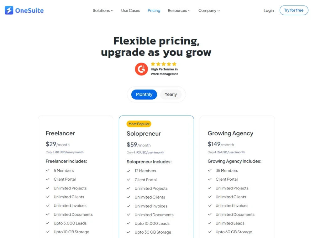 OneSuite offers an affordable all-in-one system for managing clients and billing. It covers essential CRM functions like lead tracking and project management, along with built-in invoicing and payment tracking.
