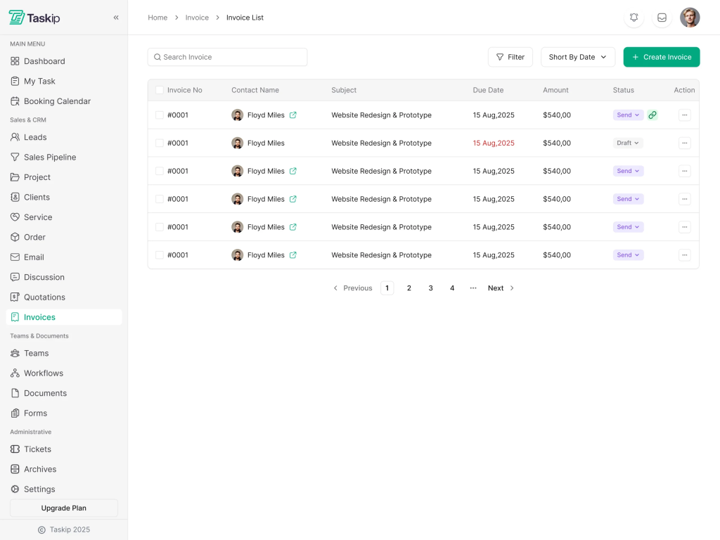 1. Taskip – Best All-in-One Platform for Web Design Agencies