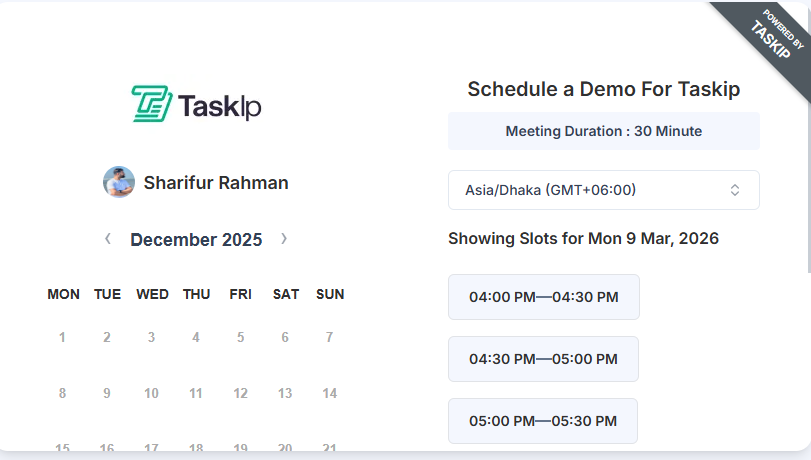 Submit issues or requests through Taskip’s Support Ticket system: