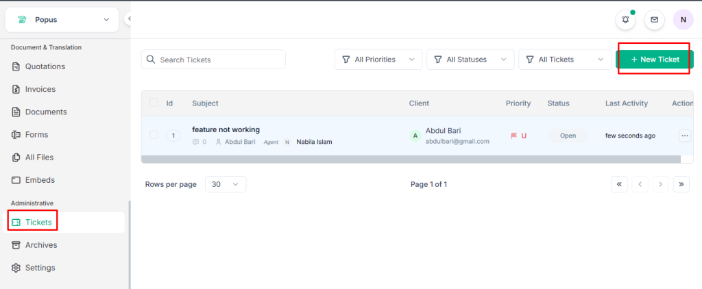 - Click Add New Ticket.