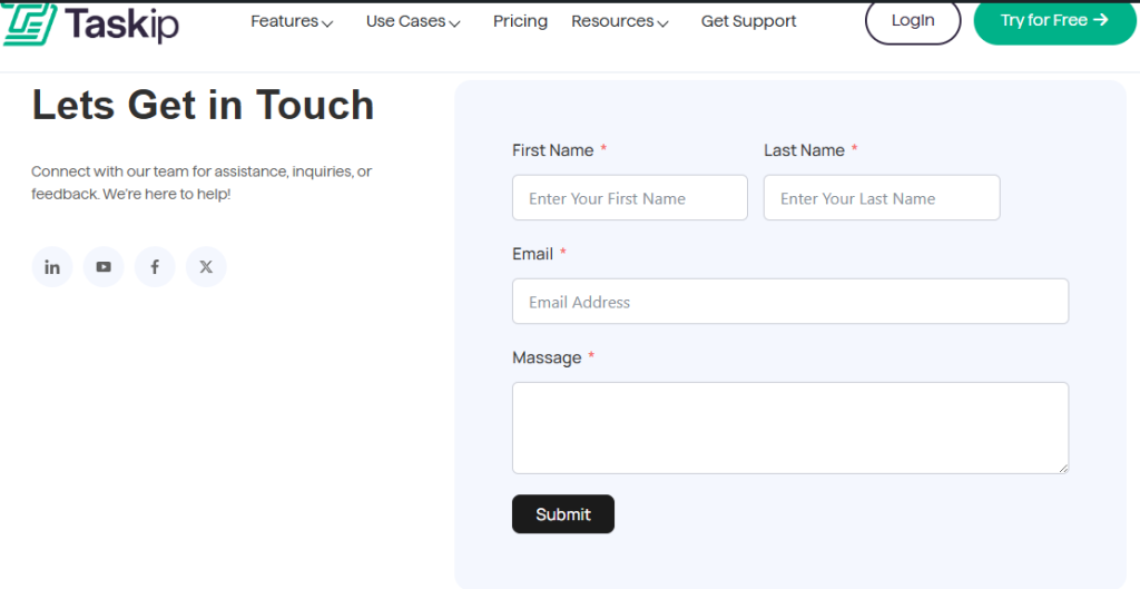 Taskip Contact Us Page #