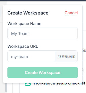 A Workspace in Taskip is the central place where you manage your projects, clients, tasks, and team collaboration. You can create multiple workspaces depending on your subscription plan to organize different teams, businesses, or workflows.