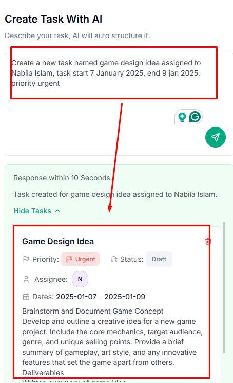 | 💡Tips – Break large deliverables into smaller, specific tasks. – Each task should represent a single actionable item that can be completed and marked done independently. |