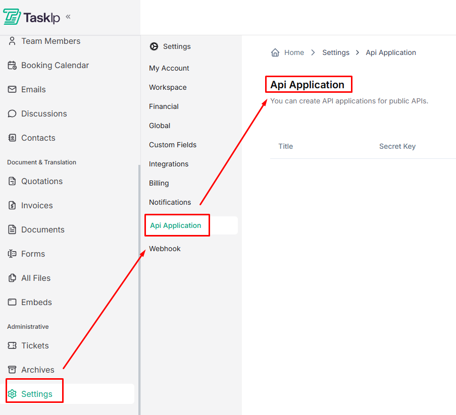 API Applications allow you to securely connect Taskip with external systems, custom scripts, or third-party tools.
