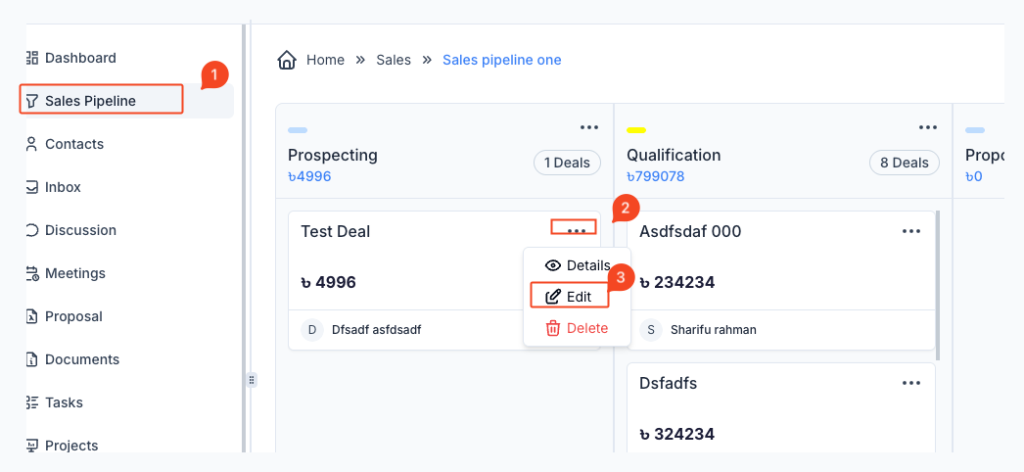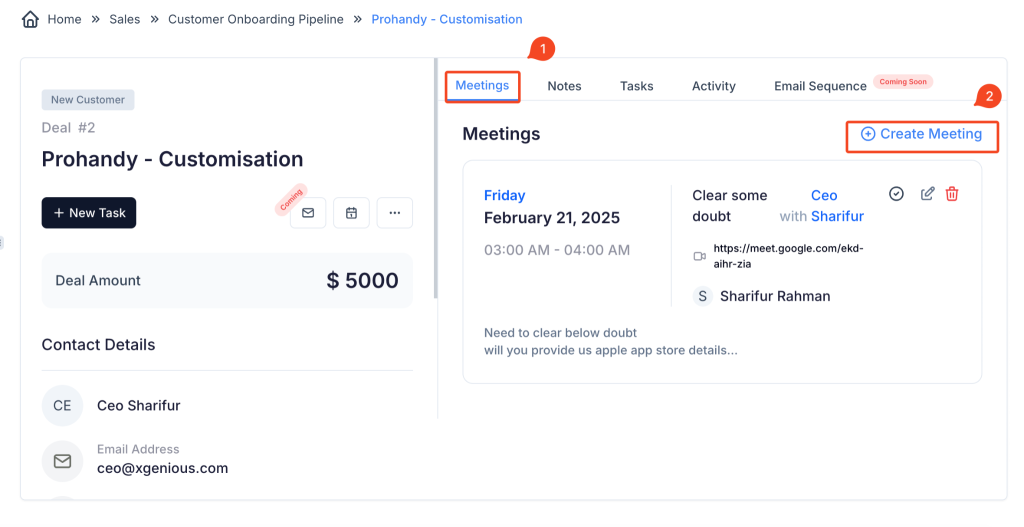 - Select a Contact: Choose the contact related to this deal (e.g., “Ceo Sharifur”).
