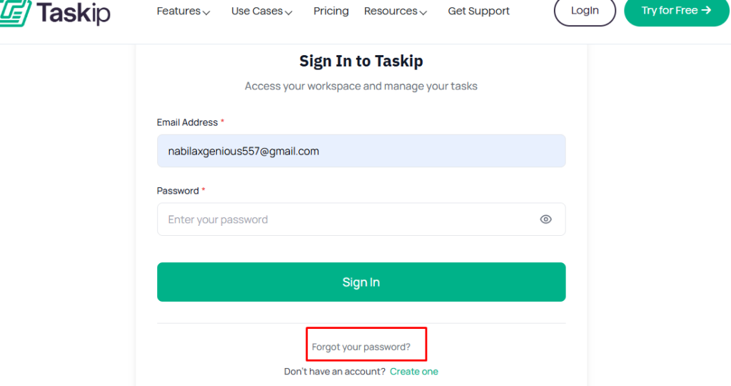 If you forget your password or cannot access your account, Taskip makes it easy to reset your login credentials securely. Follow the steps below to create a new password and regain access to your workspace.