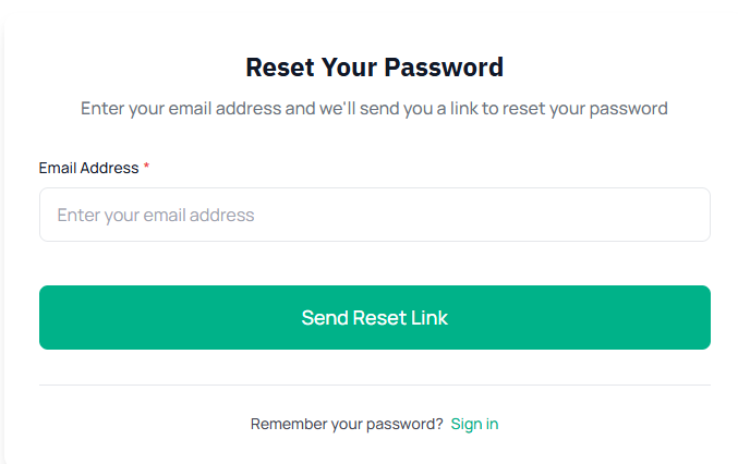 - Click Send Reset Link