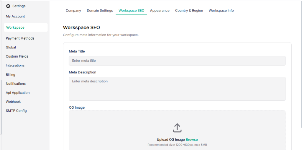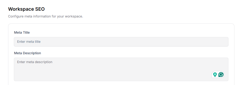 - Meta Description – Add a short description for your workspace that appears in search results.