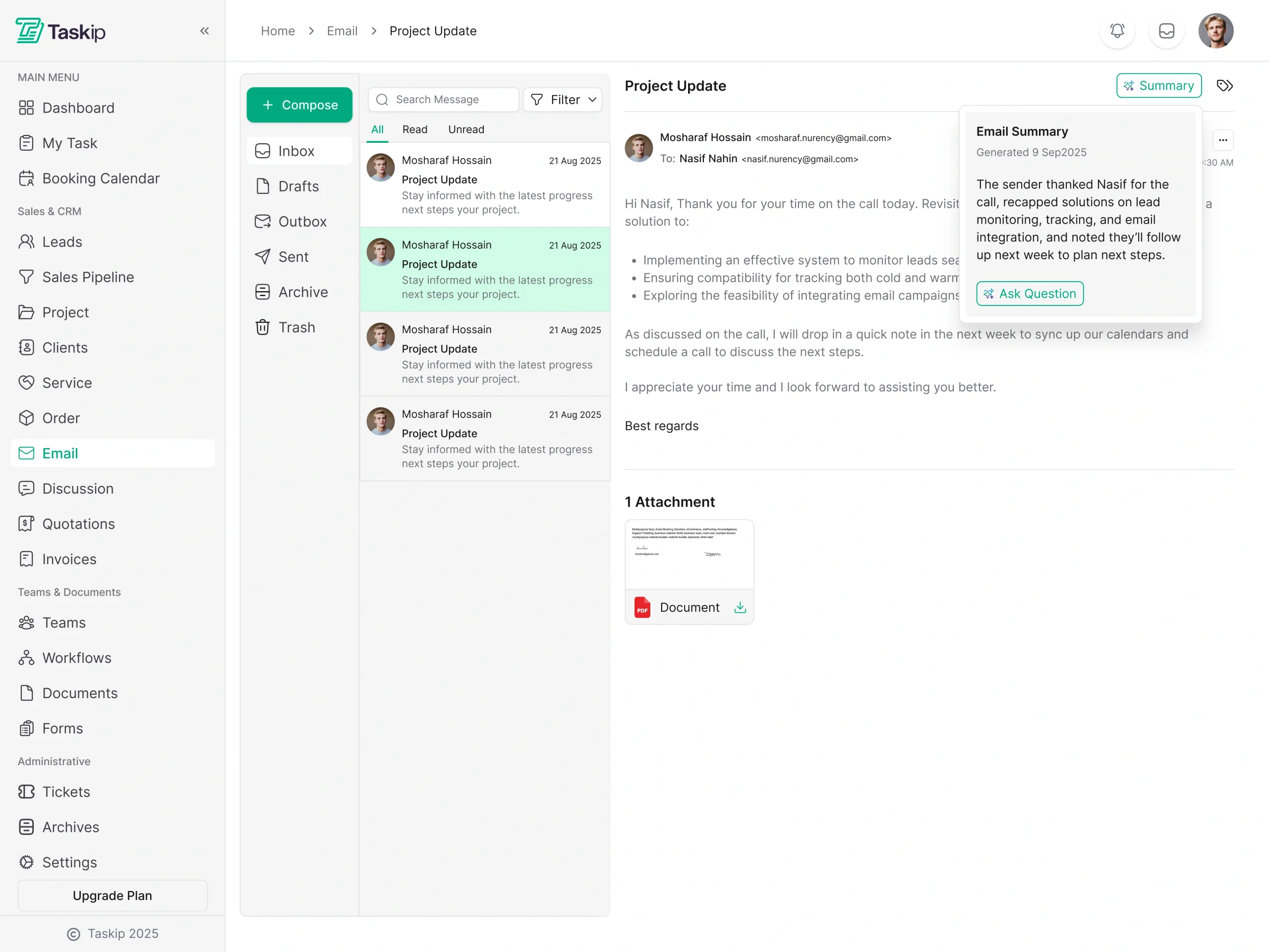 Effortlessly turn incoming emails into client records with just a single click. Streamline your workflow by converting conversations into actionable client profiles, making follow-ups and relationship management easier than ever.