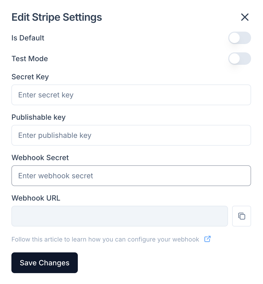 - Paste it in Taskip’s Stripe settings under “Webhook Secret”