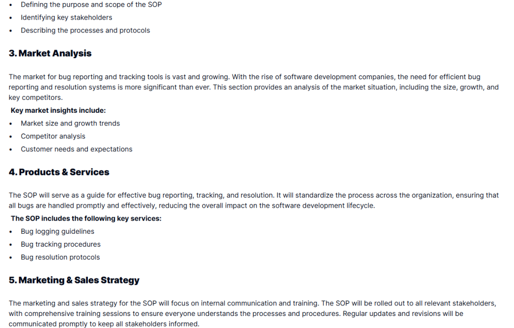 Consider a software development team managing a live application. Bugs pop up during testing or after deployment, and the lack of a structured reporting process causes delays and confusion. By adopting the Bug Reporting SOP Template, the QA lead ensures each tester logs bugs with specific details such as replication steps, severity, screenshots, and timestamps. Developers receive well-documented tickets, reducing time spent going back-and-forth for clarity. When new team members join, they already have a defined flow for triaging and escalating bugs. This leads to faster issue resolution, improved software stability, and stronger team collaboration.